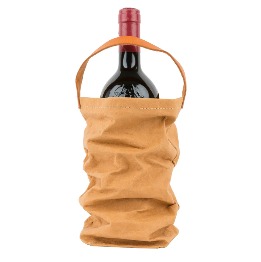 WINE BAG W/ LEATHER STRAP